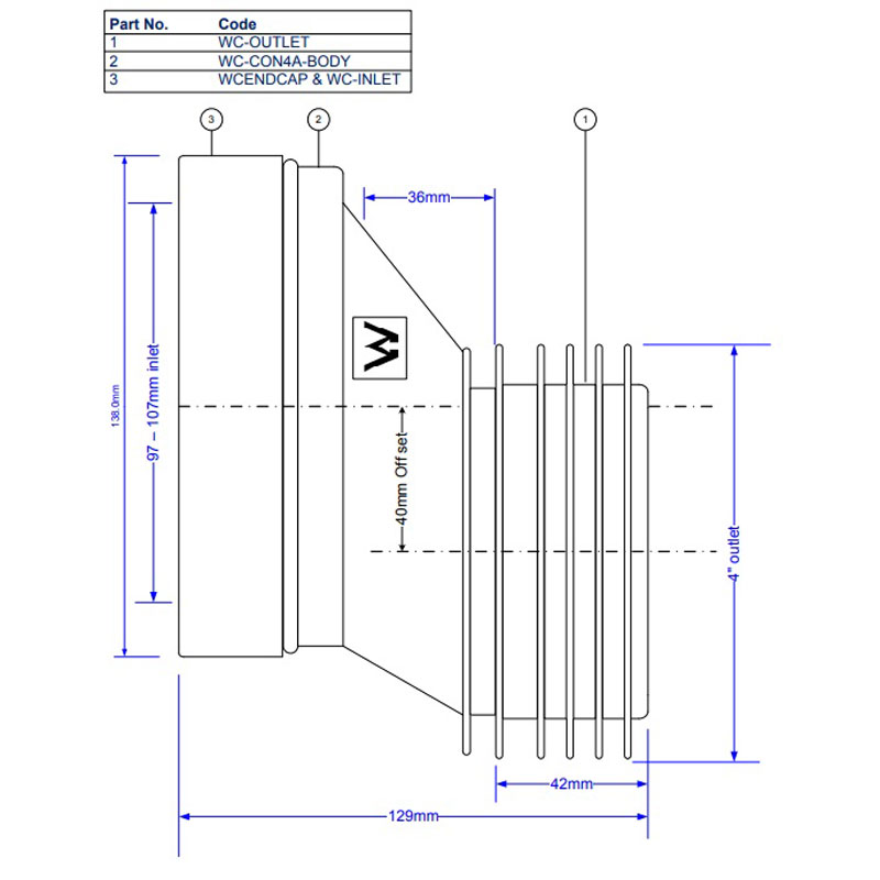 Available with finned outlet for 4"/110mm PVC-U and cast iron soil pipe diameters (internal), and with plain end outlet to fit 110mm soil or underground pipe fittings. 97-107mm Inlet suits all pan spigots. Adjustable Length.